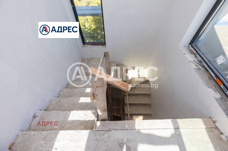Къщата е разположена на няколко нива, като предлага удобни и добре разпределени пространства просторна дневна зона с директен излаз към веранда и двор, три спални с балкони и собствени бани, работно помещение, гараж с топла връзка, както и помощни помещения. Най-голямото предимство е панорамната покривна тераса истинско място за почивка, откъдето се разкрива гледка към морето и кея на к.к. 'Слънчев ден'.