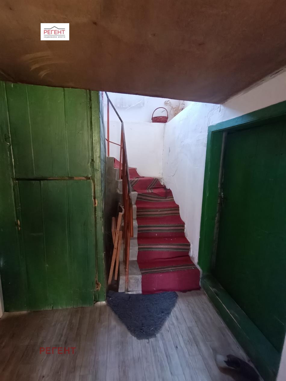 първи етаж - коридор, в ляво стая с кухненска ниша /с прозорец/, още една стая, която в момента е като складово помещение. Вътрешно масивно стълбище ни отвежда на втория етаж, където имаме 3 спални и една голяма тераса.