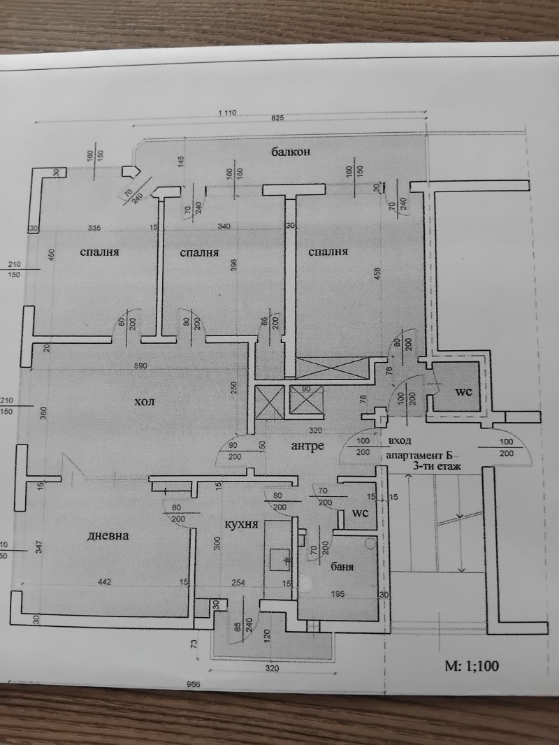 - три спални,
