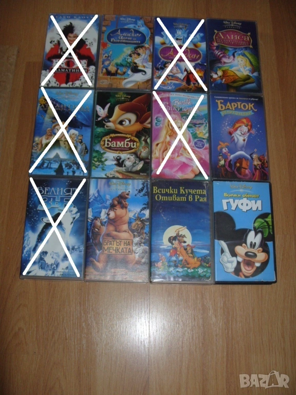 Всички видеокасети които са продадени са задраскани на снимките и не са изписани в списъка.