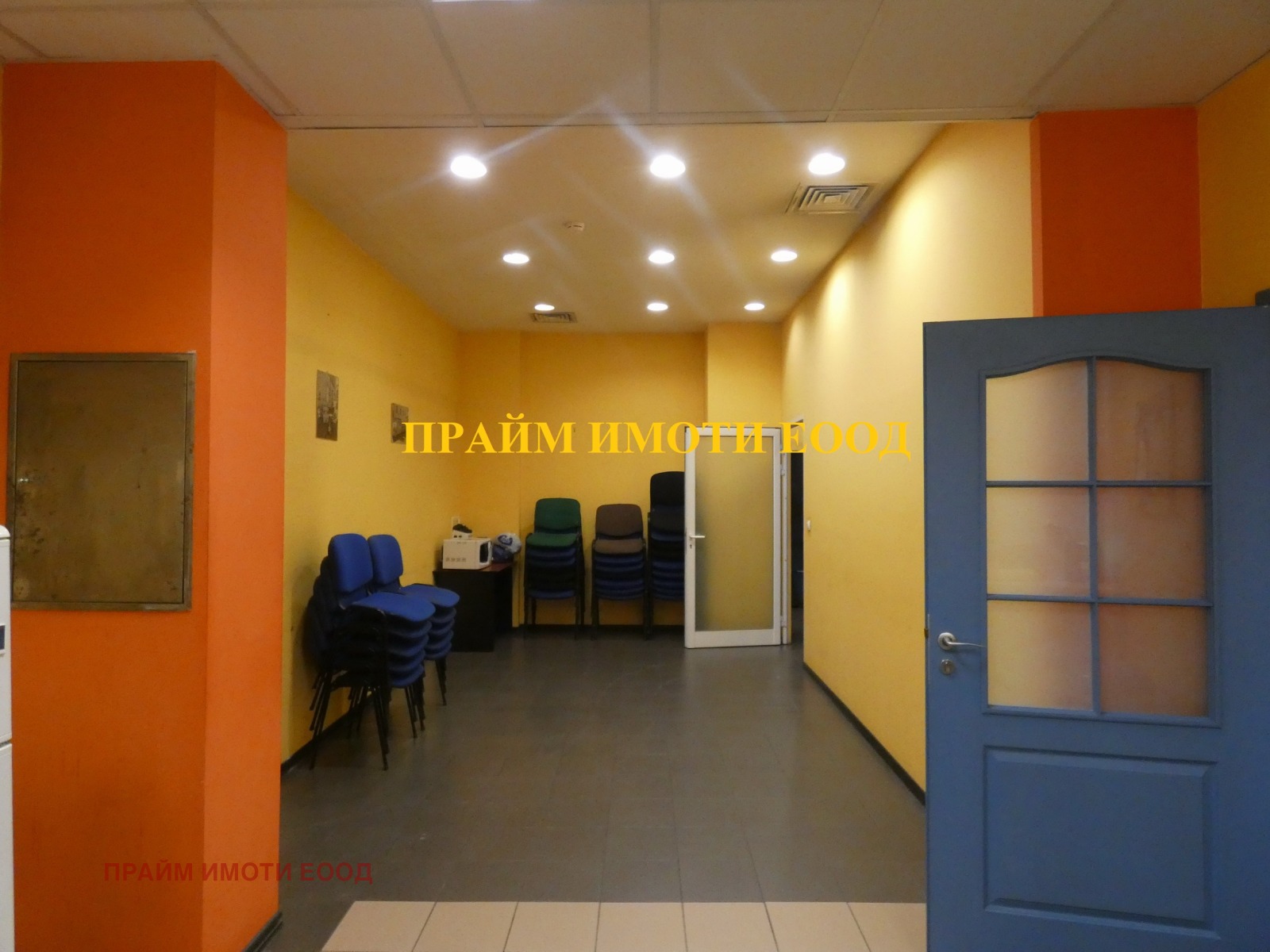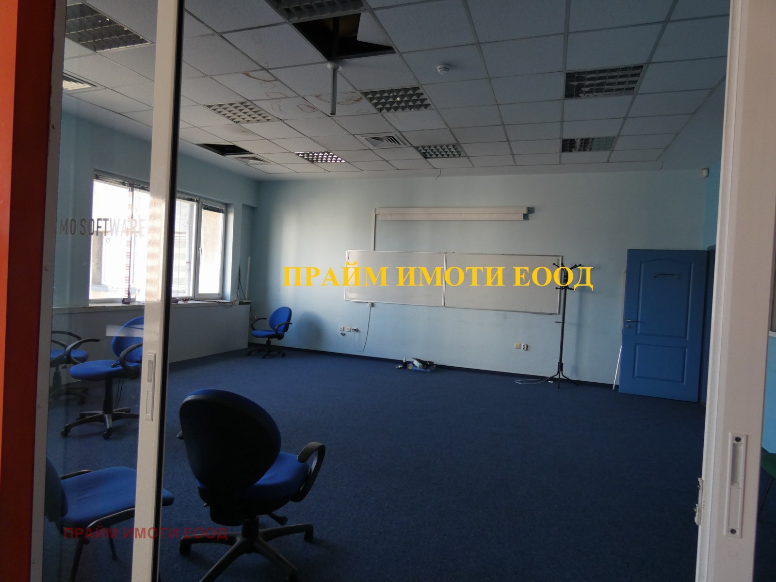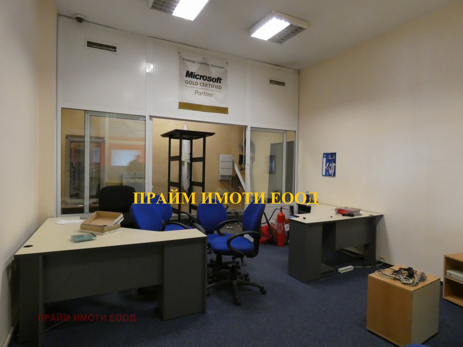 Прайм имоти дава под наем офис помещение в административна сграда в жк Гео Милев в близост до Sky Sity Mall, БАН, бившият хотел Плиска, МВнР, АВ, общината, зала Универсиада, зала Фестивална и др. Офисът е в много добро състояние, окабелен изцяло. До сега е бил офис на софтуерна компания. Помещението е подходящо освен за офис и за студио, шоу рум, учебна зала, спортна зала, кол център, игрална зала, TV студио и др. PVC дограма, собствени санитарни възли + баня, обзаведен бокс офис, голяма врата с достъп на палетна количка, видео наблюдение, картов достъп, пожаро-известителна инсталация, отопление електричество. Частично офис обзавеждане. Асансьор. Много добре поддържани общи части. Наемна цена 7 евро/кв.м/ месец без ДДС. Възможност за наемане на паркинг място 70 евро/месец без ДДС. 24/7 физическа охрана + видео наблюдение, контролиран достъп. За улеснение, прилагам разпределение на помещението. Огледи само в работната част на денонощието.