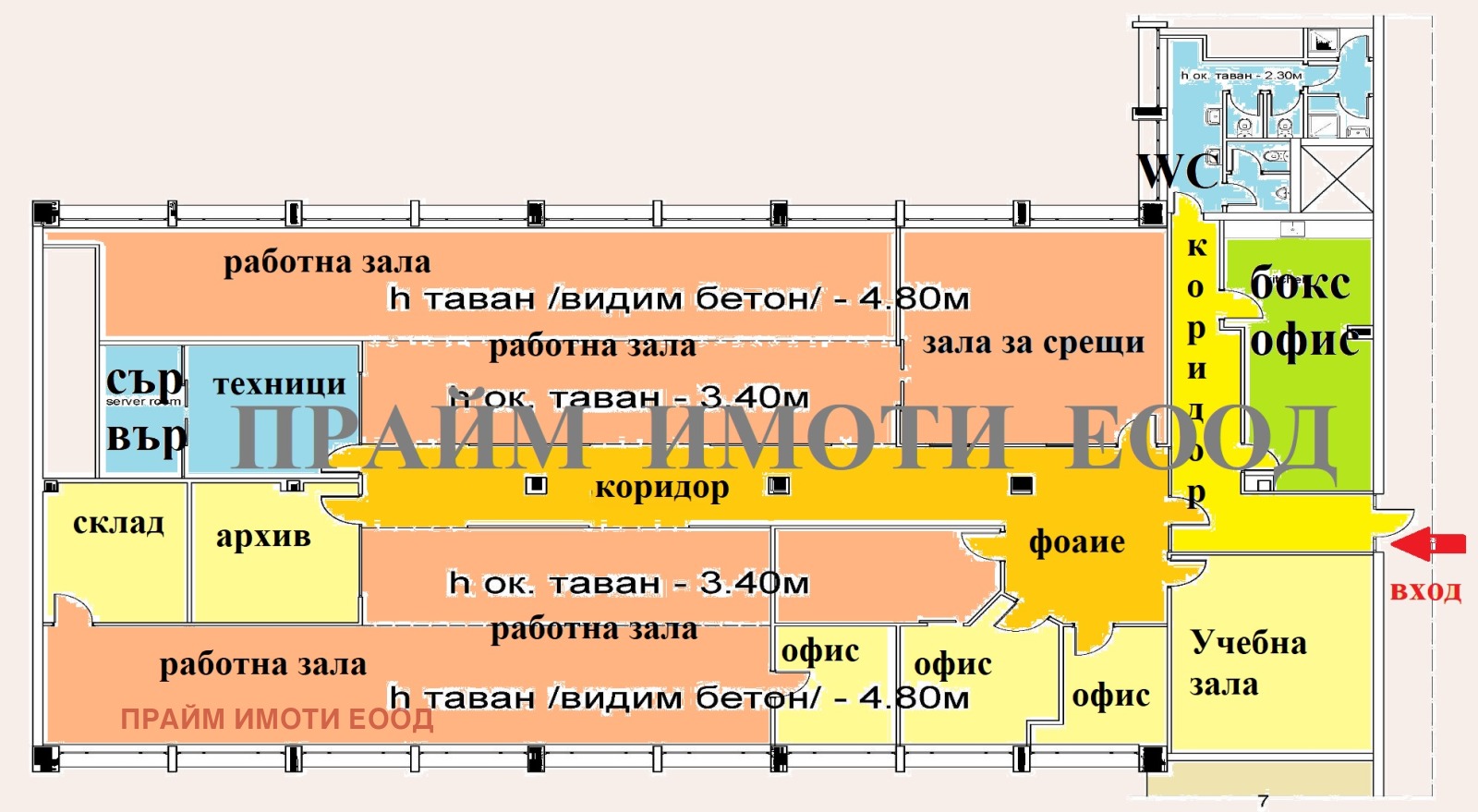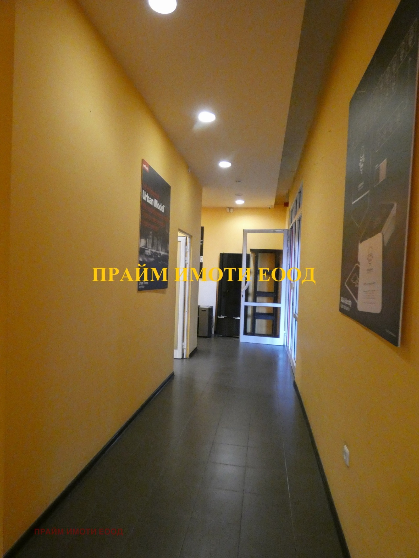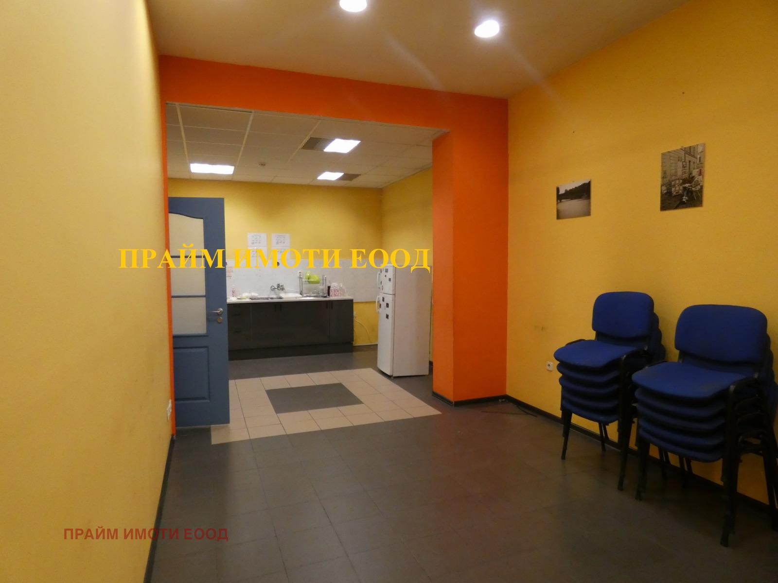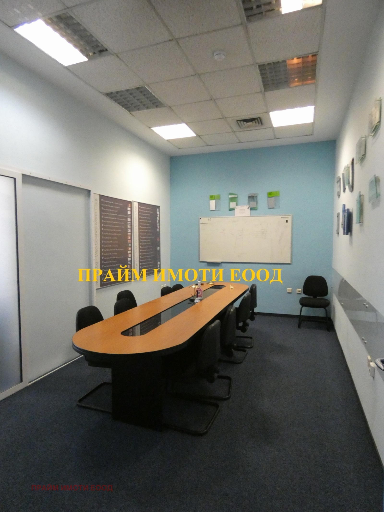 Прайм имоти дава под наем офис помещение в административна сграда в жк Гео Милев в близост до Sky Sity Mall, БАН, бившият хотел Плиска, МВнР, АВ, общината, зала Универсиада, зала Фестивална и др. Офисът е в много добро състояние, окабелен изцяло. До сега е бил офис на софтуерна компания. Помещението е подходящо освен за офис и за студио, шоу рум, учебна зала, спортна зала, кол център, игрална зала, TV студио и др. PVC дограма, собствени санитарни възли + баня, обзаведен бокс офис, голяма врата с достъп на палетна количка, видео наблюдение, картов достъп, пожаро-известителна инсталация, отопление електричество. Частично офис обзавеждане. Асансьор. Много добре поддържани общи части. Наемна цена 7 евро/кв.м/ месец без ДДС. Възможност за наемане на паркинг място 70 евро/месец без ДДС. 24/7 физическа охрана + видео наблюдение, контролиран достъп. За улеснение, прилагам разпределение на помещението. Огледи само в работната част на денонощието.
