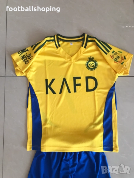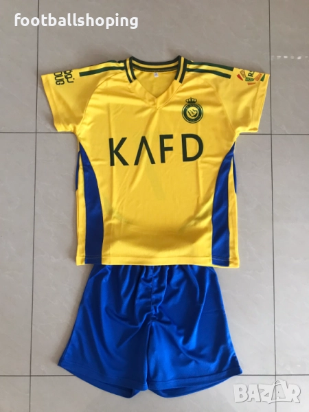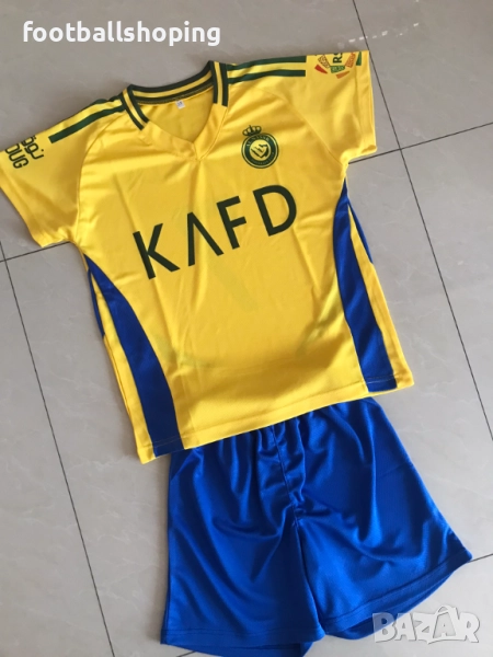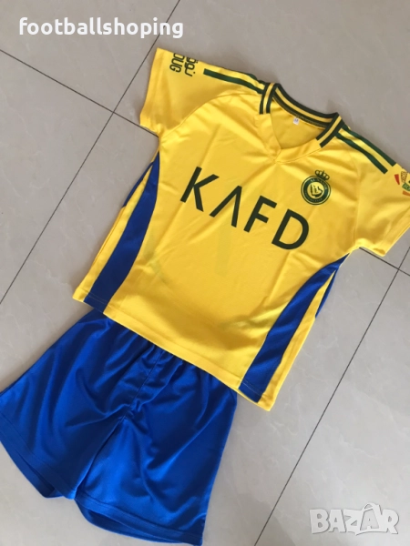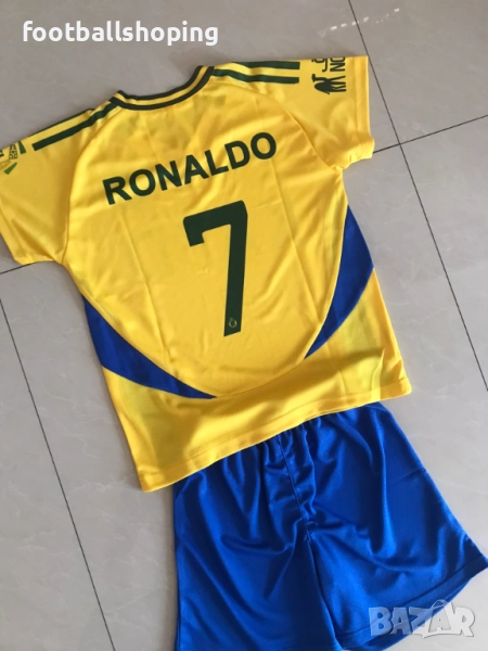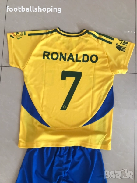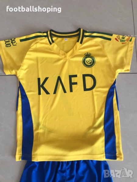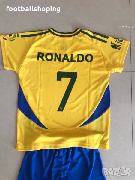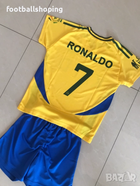 Предлагаме детски къс екип на Роналдо Ал Насър Сезон 2025/2026.Налични размери от 116 до 164см.Материята на комплектите е Полиестер лукс :) Българско производство. Гарантирано качество.Моля разгледайте и другите обяви в профила ни или посетете facebook страницата ни FOOTBALLSHOPING :)
