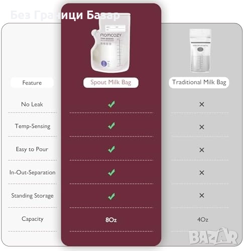 BPA free и предварително стерилизирани за безопасно съхранение