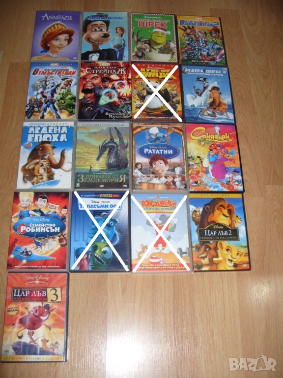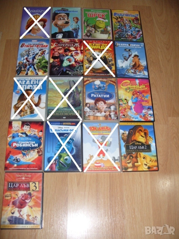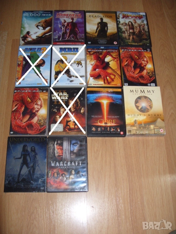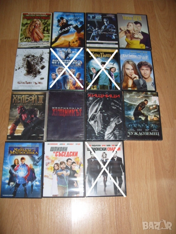 Всички филми които са продадени са задраскани на снимките и не са изписани в списъка.