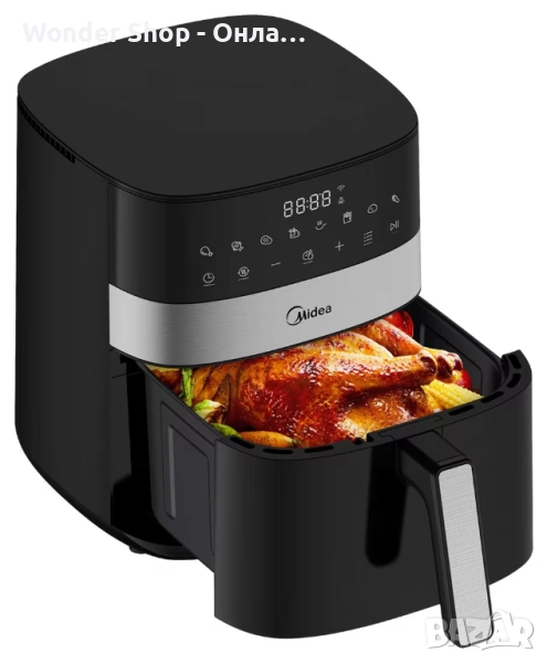 Еър фрайър Midea MF-CN65E2 - За готвене с горещ въздух Капацитет: 6.3 литра; Мощност: 1500–1700 W
