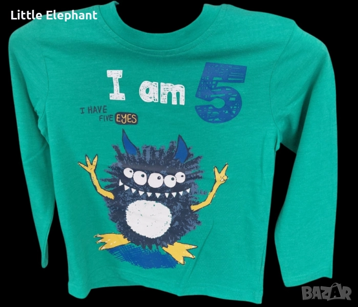 Блузка с дълъг ръкав за 5-6 год момченце,чудовище"I am 5",Англия/нова → Обява 51677307