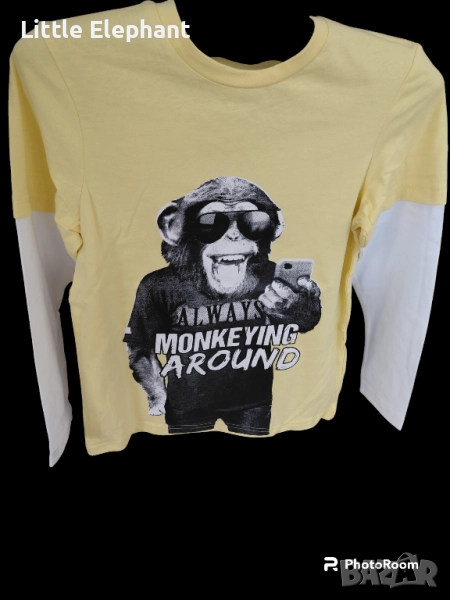 Блузка с дълъг ръкав за 8-9 год момченце"Always monkeying around",Англия/нова