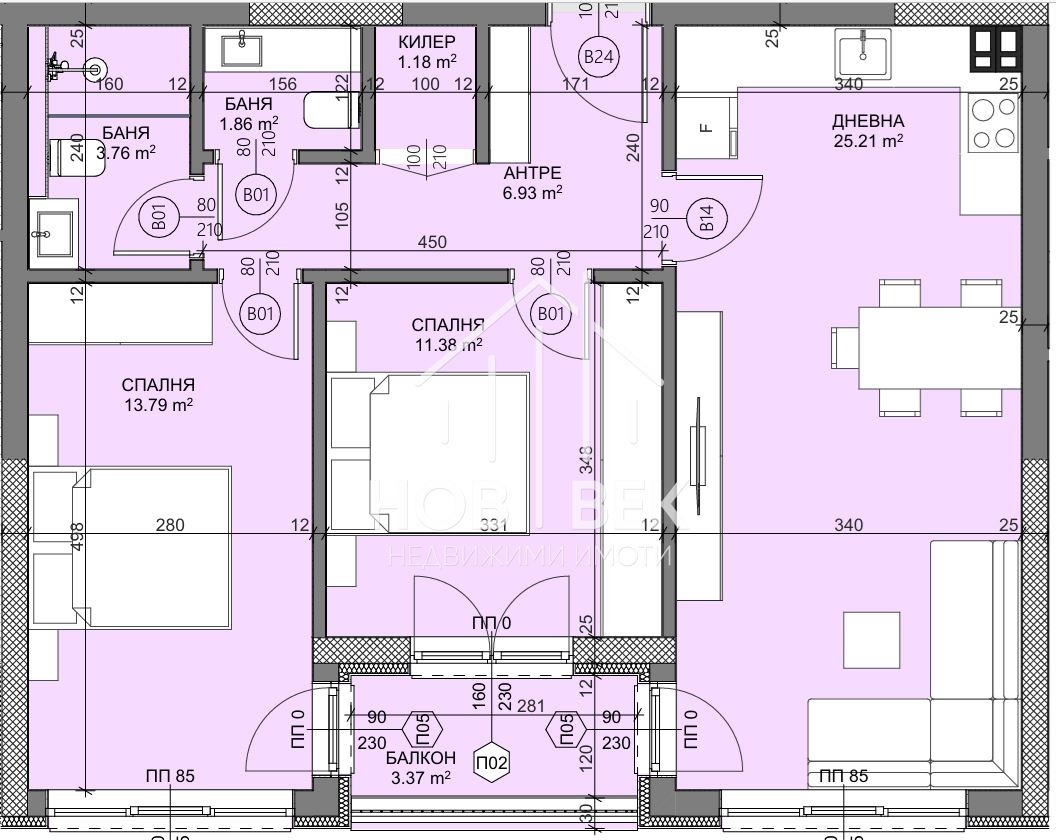 Светли и просторни стаи с правилни форми, всяко жилище разполага с 1 или 2 сервизни помещения;