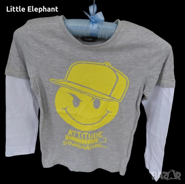 Блузка с дълъг ръкав за 6-7 год момченце емоджи"Be sure,attitude down loading",Англия/нова → Обява 51677493