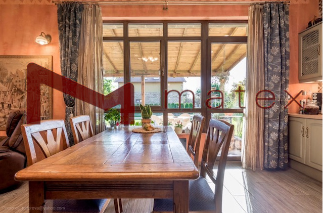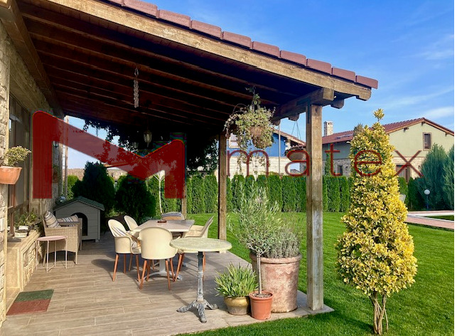 Къщата е стилно обзаведена и оборудвана, и се състой от: огромна дневна трапезария, пет просторни спални (16; 20; 20; 40; 40 кв.м), пет бани с тоалет, килер, веранда, гараж за два автомобила и открити три парко места. Прилежащ парцел 675 кв.м. Девет метров басейн в озеленения двор с декоративни и плодни дръвчета. Тук вашето семейство и домашни любимци ще можете да изживеете незабравими моменти и споделени празници. Със собствен трафопост и водопреносна мрежа, интернет.