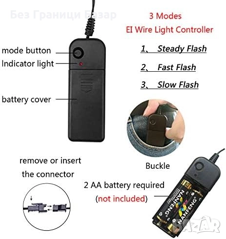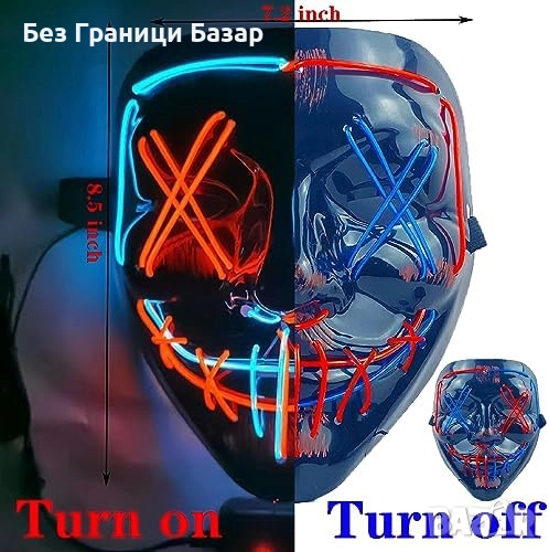 LED маска с 3 режима: постоянно светене, бавен и бърз мигащ ефект