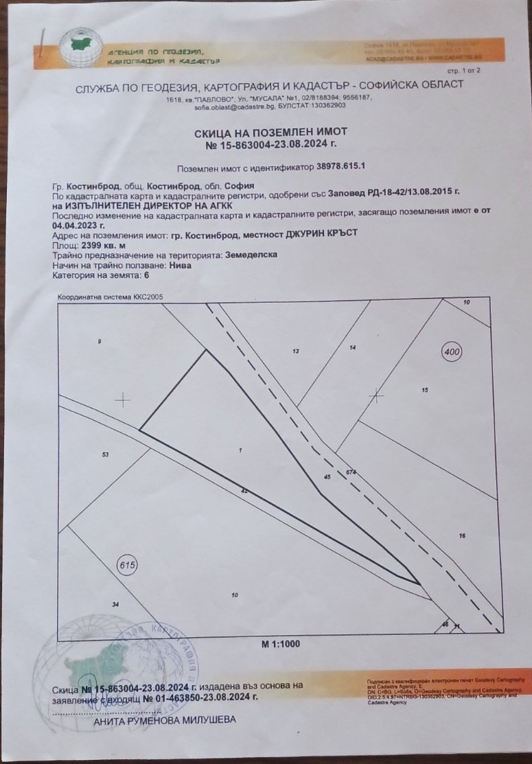Агенция СкалаДи предлага за продажба поземлен имот намиращ се в землището Шияковци ,местност ДЖУРИН КРЪСТ. 2399кв.м. Равен. До къщи, ток,вода.