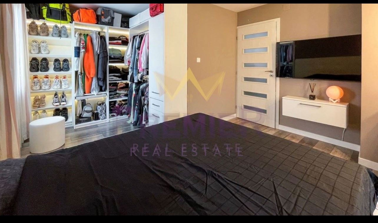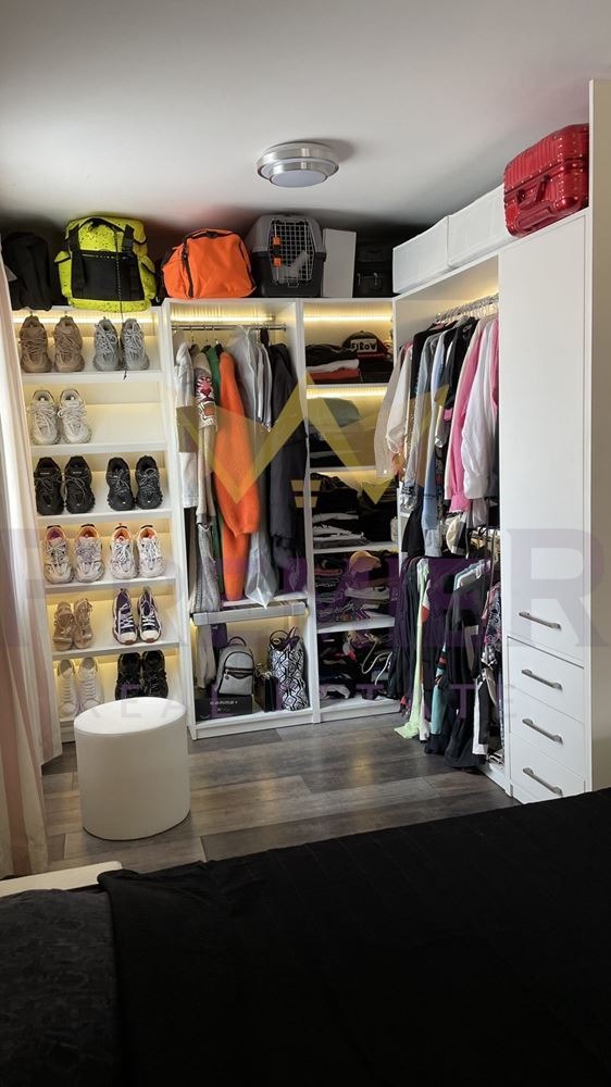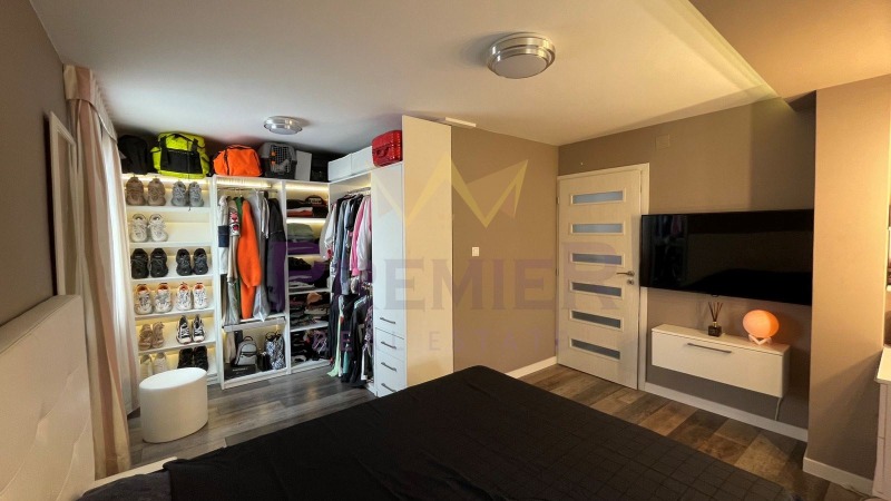 Спалнята е уютна и разполага с голямо двойно легло, гардероб и нощни шкафчета. Тя осигурява тихо и спокойно място за почивка, с достатъчно място за съхранение на лични вещи и дрехи.