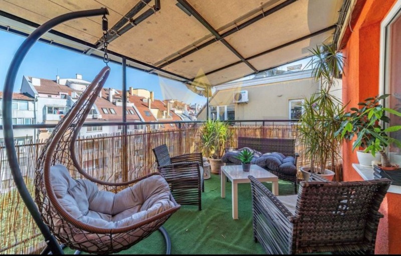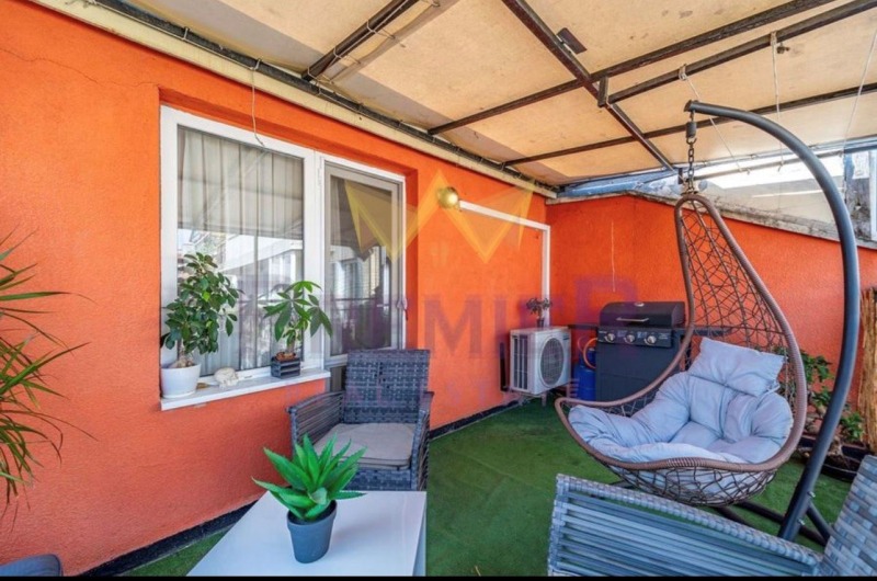 Апартаментът разполага с тераса, която предлага идеално място за сутрешно кафе или релакс на открито. Достъпът до терасата е от дневната, осигурявайки свеж въздух и естествена светлина.