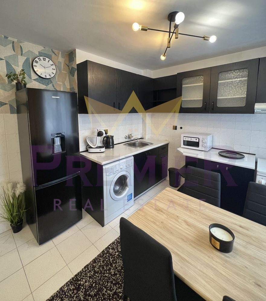 Две спални: Апартаментът разполага с две уютни и светли спални. Основната спалня е обзаведена с удобно двойно легло, гардероб и нощни шкафчета. Втората спалня може да се използва като детска стая или кабинет, в зависимост от нуждите на наемателите. Просторни прозорци в двете стаи осигуряват естествена светлина и уютна атмосфера.