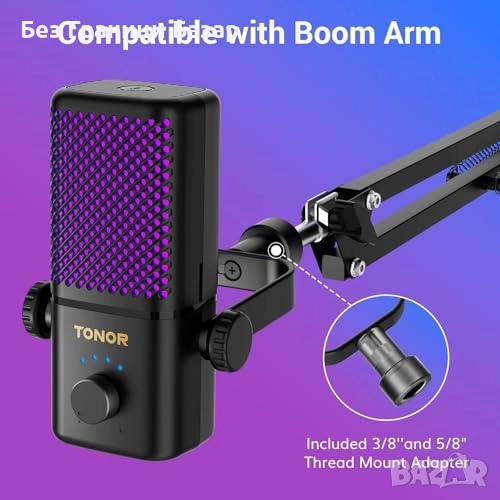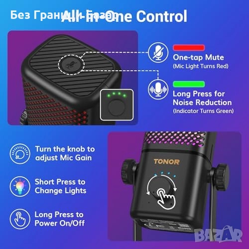 Нов Геймърски безжичен микрофон с RGB светлини, 15ч работа, USB съвместим