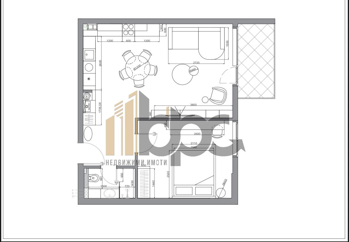 - 🛋️ Разпределение: входно антре, просторна дневна с кухненски бокс, самостоятелна спалня, баня с тоалетна, балкон