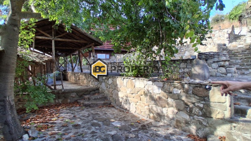 Двора е терасиран и красиво обособен и покрит с естествен камък.