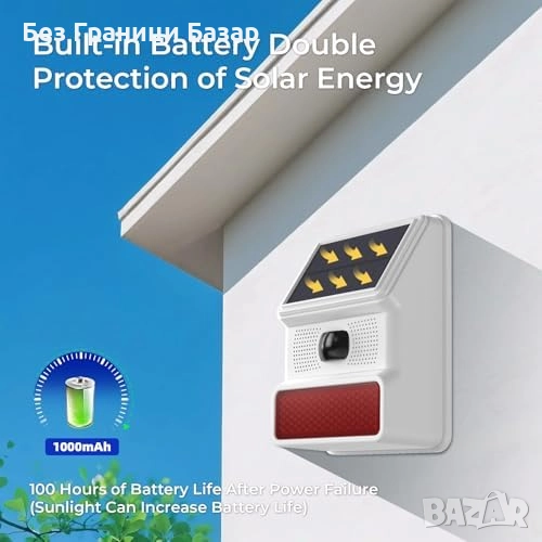 Безжична външна сирена с 110 dB звук и мощна LED светкавица