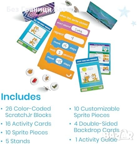 Нов Комплект за програмиране Scratch за деца 8+ – 87 части, 16 задачи