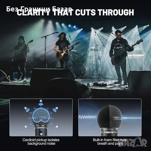 Професионален динамичен микрофон с кардиоидна насоченост за кристален вокал