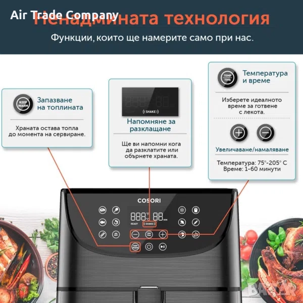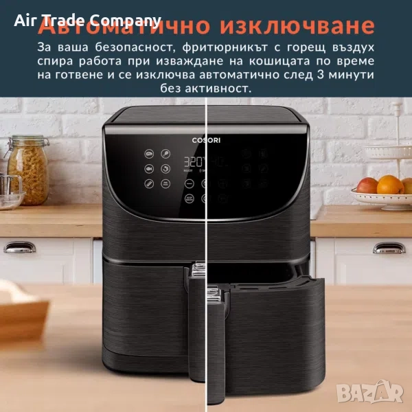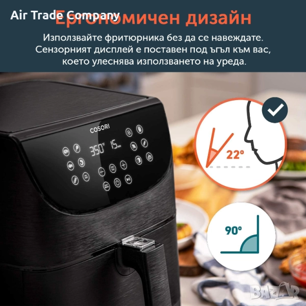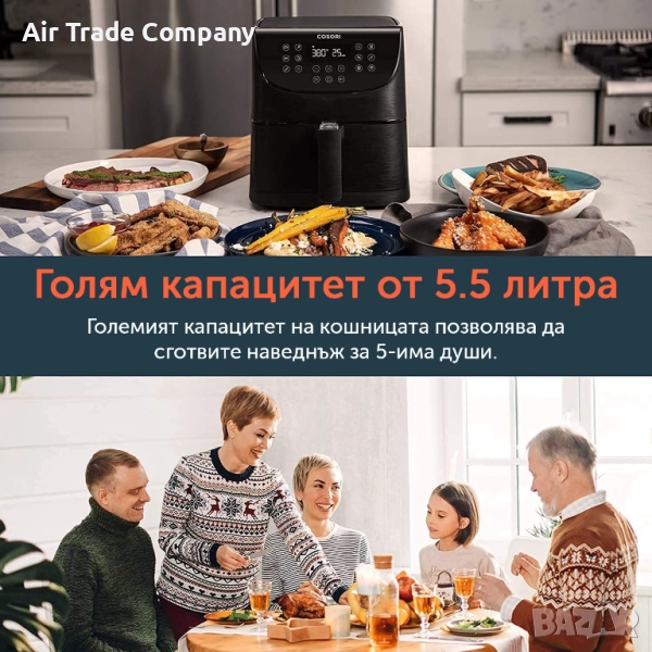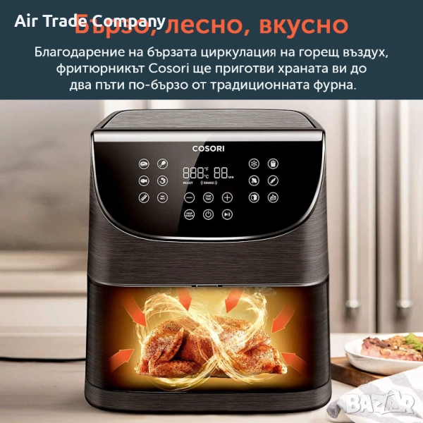 Cosori Pro Air Fryer всяко ястие ще е готово до два пъти по-бързо и с 85% по-малко мазнини.
