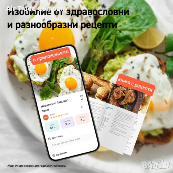 Черпете вдъхновение от над 100 рецепти в безплатното приложение VeSync. Само за кратко време ще започнете да готвите като професионалист.
