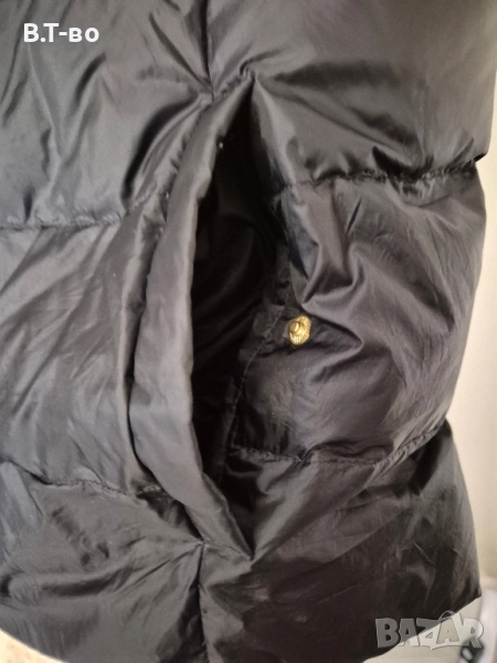 100% оригинален, само изпран, олекотен с пълнеж от патенти пух. Има странични джобове и ластици отвътрешната страна за регулиране на талията. Цвят-черен.