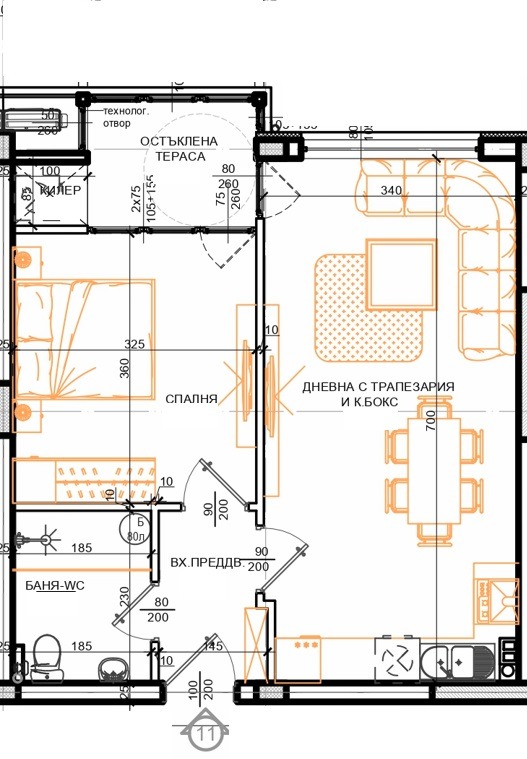 Ап. 11, вх. А, ет. 3 /втори жилищен етаж/