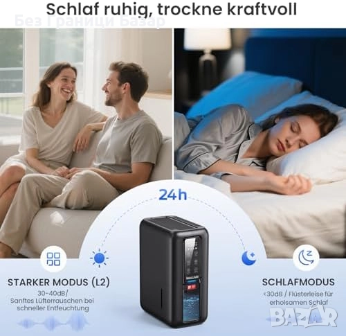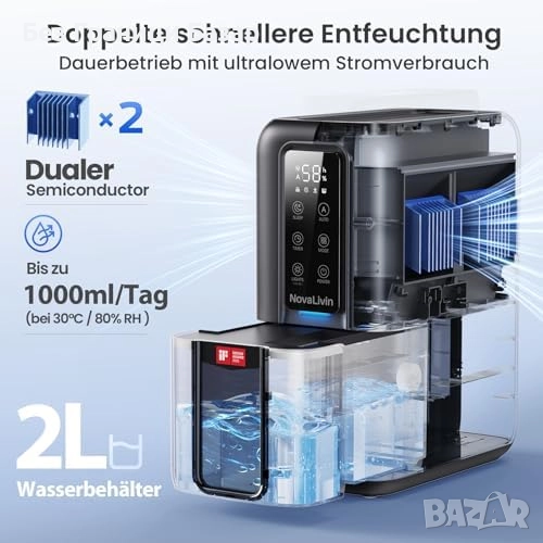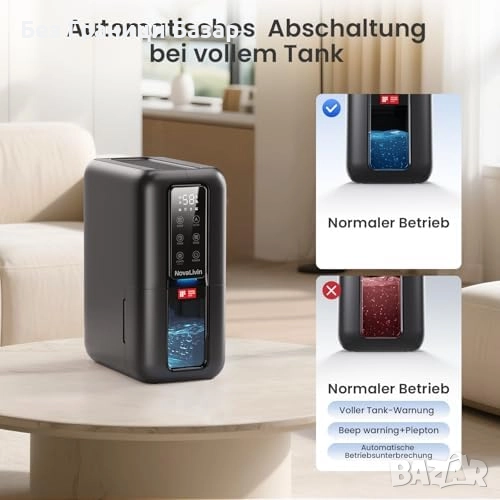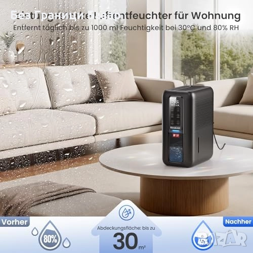 Нов Преносим влагоуловител 2L с таймер, LED светлина и тих режим за дом
