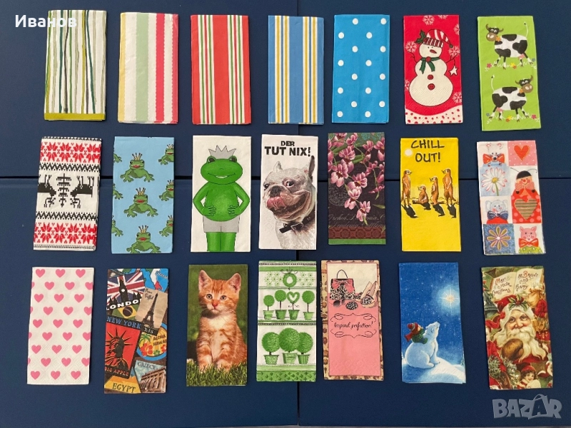 Колекция от 50 бр. различни салфетки. Носни кърпички., снимка 1 - Други ценни предмети - 51681322  Колекция от 50 бр. различни салфетки. Носни кърпички., снимка 2 - Други ценни предмети - 51681322  Колекция от 50 бр. различни салфетки. Носни кърпички., снимка 3 - Други ценни предмети - 51681322 1/3