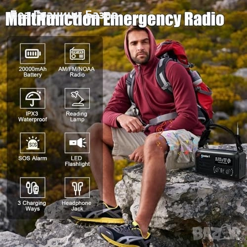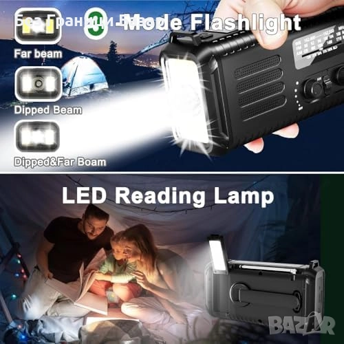 Ново Аварийно AM/FM радио 2000mAh със соларно и ръчно зареждане SOS
