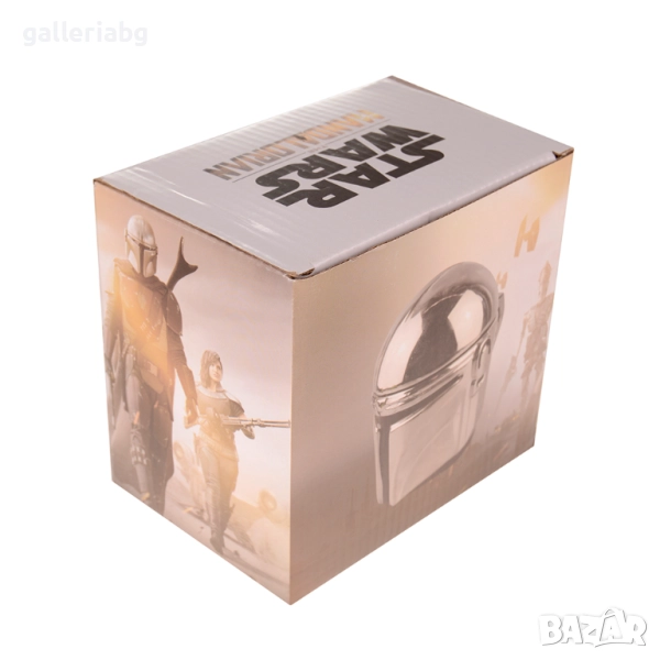 чаша Mandalorian, Star Wars чаша, чаша шлем киборг, 3D чаша филм, чаша с капак герой, сувенирна чаша Mandalorian, фенска чаша Star Wars, подаръчна чаша герой, колекционерска чаша шлем
