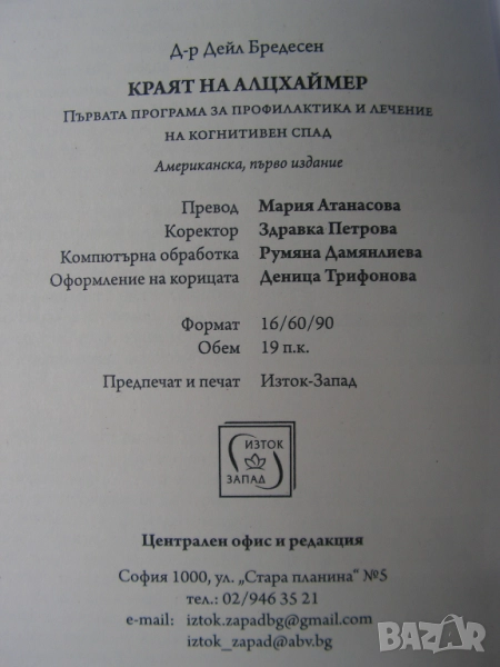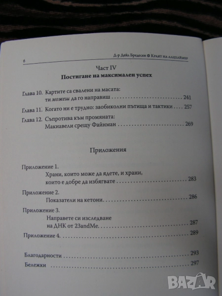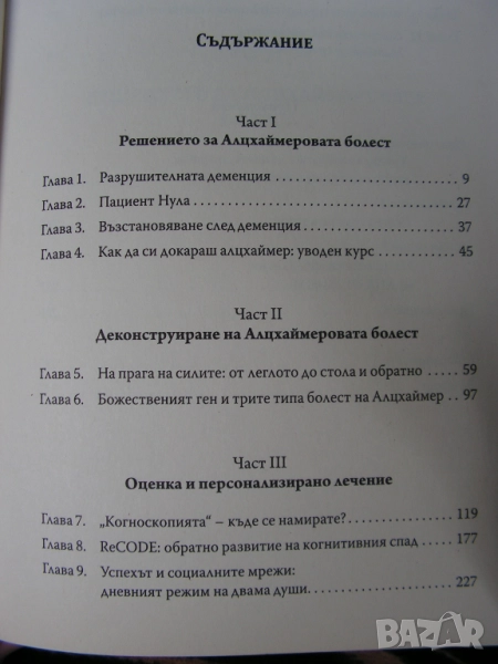 В книгата си „Краят на алцхаймер“ д-р Бредесен описва стъпките, които могат да предотвратят, забавят, спрат и обърнат процеса на задълбочаване на деменцията и когнитивните нарушения. Той ги обединява в лечебен протокол, наречен ReCODE. Резултатите от следването му са впечатляващи: хиляди пациенти показват забележително подобрение в рамките на 3 до 6 месеца. Намаляване на токсините, хигиена на съня, оптимизиране нивата на хормоните – това са само част от целите, които д-р Бредесен поставя пред засегнатите. Но усилията си струват: засега ReCODE е единственият ефикасен начин да предпазим себе си и близките си от безпаметната
