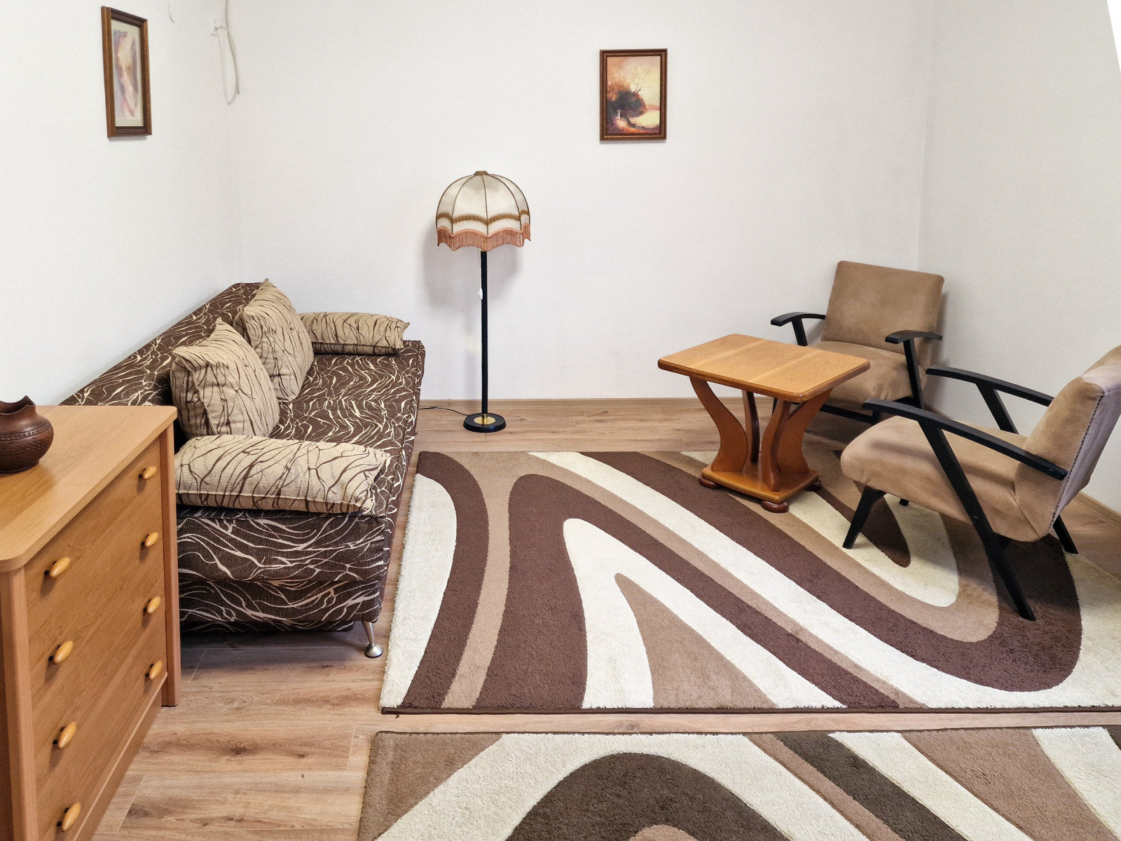 - Втора самостоятелна стая с диван, фотьойли, холна масичка, скрин и лампион, подходяща за кабинет, втора спалня или стая за гости.