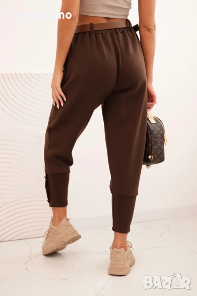 Дамски панталон butter с декоративни копчета и кафяв колан