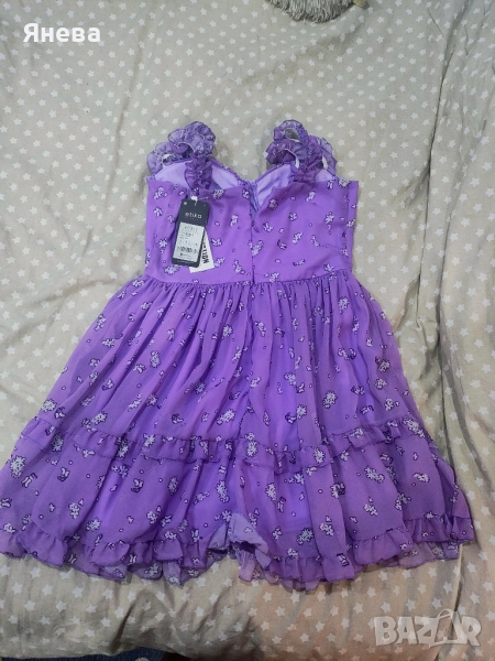 Дамска рокля със подплънки нова със етикет цвят лилаво на бели цветя закупена е за 75 лв