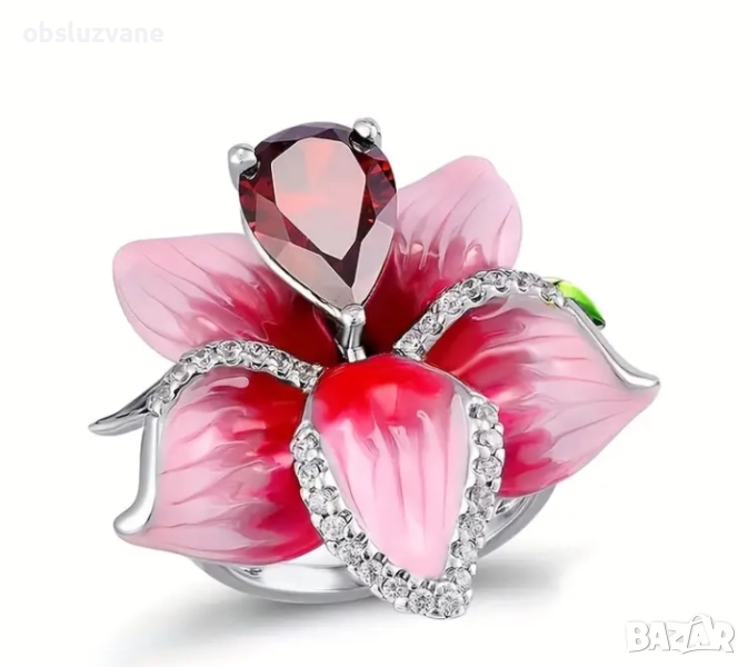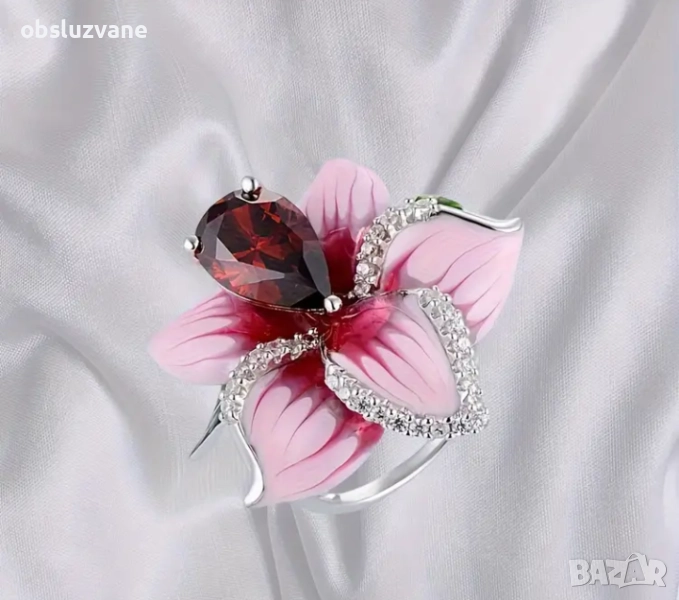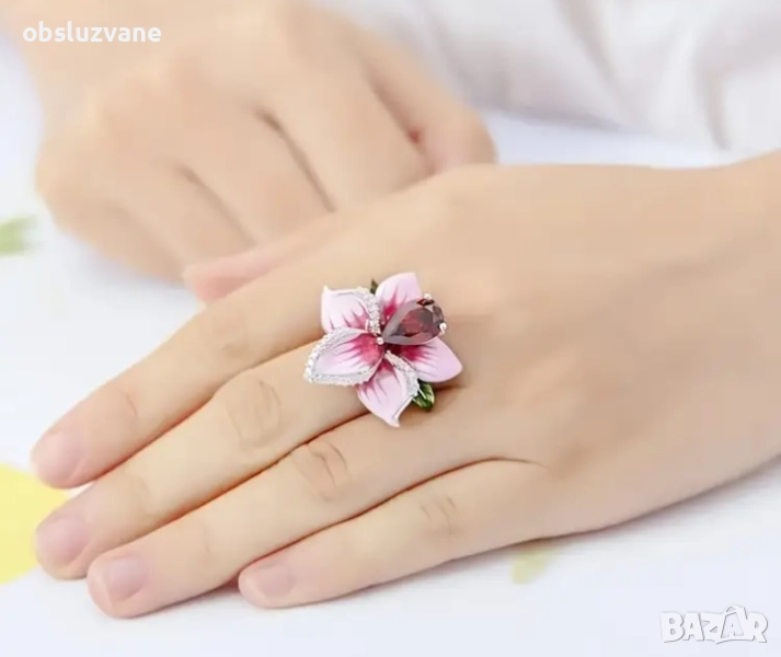 Емайлиран, модерен и елегантен пръстен със синтетичен цирконий в розово, идеален подарък за рожден ден или парти, за делници .