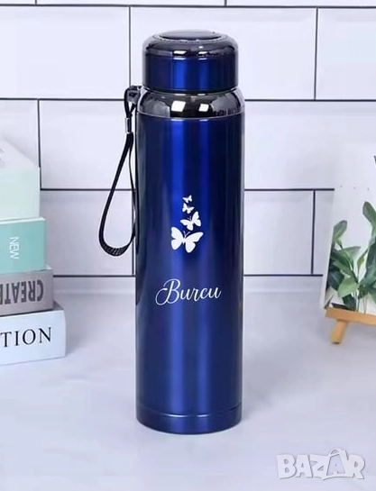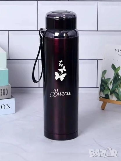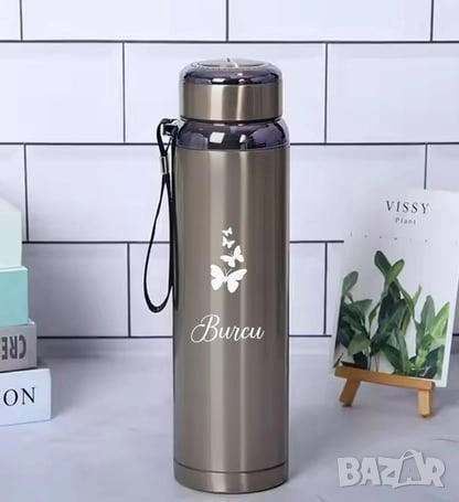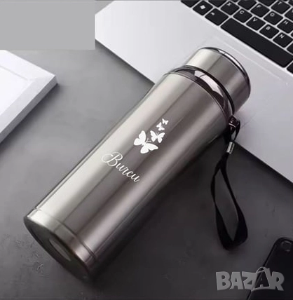 Термос от неръждаема стомана с вместимост 1 литър и дизайн с пеперуди – Задържа топлина или студ до 12 часа