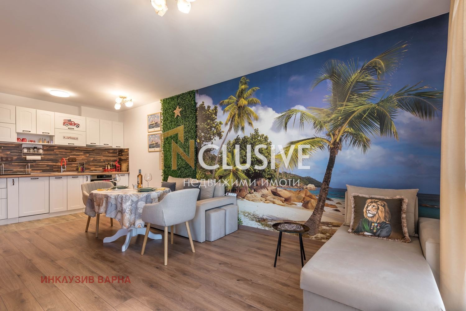 прекрасна дневна с кухненски кът и трапезария;