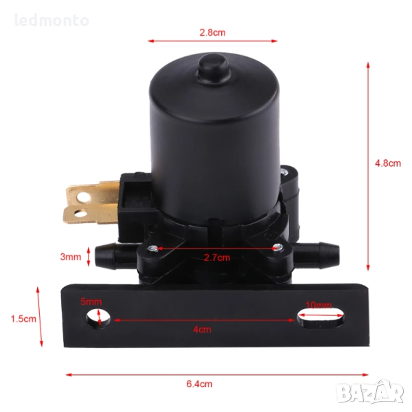 Изработена от здрав и устойчив пластмасов корпус , тази помпа осигурява бързо подаване на течност към пръскалките и гарантира отлично измиване на предното стъкло. Това е директен заместител на старата или повредена помпа, без нужда от преправяне.