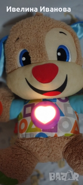 Продавам образователна играчка Fisher Price - кученце без забележка неразличим от нов. Играчката е със Smart Stages технология, която позволява да бъде избрано най-подходящото забавление за всеки един етап от ранстежа на детенцето. Ръчичките, крачетата, коремчето със сърчицето и ушичките на кученцето се активират при допир. Те ще занимават мъничето с повече от 50 песнички за припяване, забавни фрази и звуци, ще му представят частите на тялото, цветовете и буквите и ще го научат да брои. Тя е изцяло на български език! Технологията Smart Stages има три нива: • Ниво 1 (над 6 месеца) - Детенцето ще се запознае с първите думички и звуци, които да събудят любопитството им. • Нива 2 (над 12 месеца) - Задаване на простички въпроси. • Ниво 3 (над 18 месеца) - Креативни забавления и ранни ролеви игри. Нужни са му 3 x AA батерии. Подходящ е за мъничета над 6 месеца.