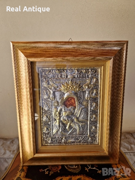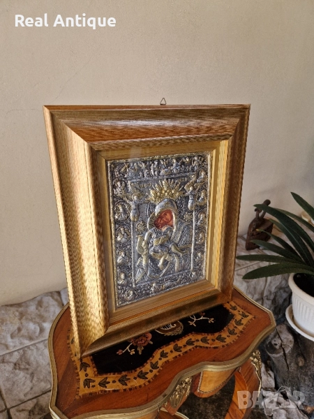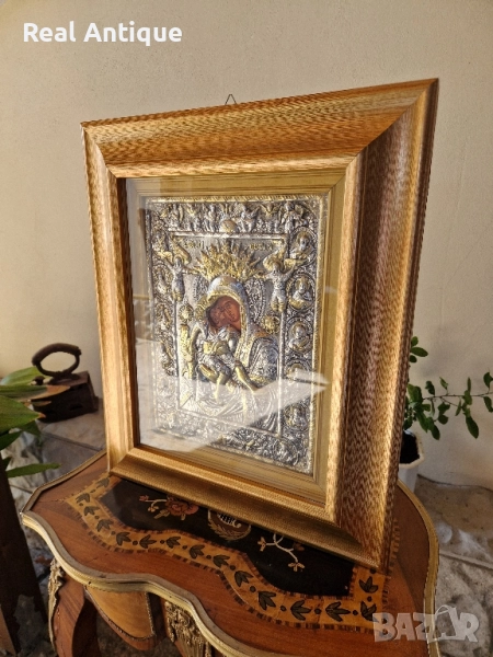 Продавам прекрасна голяма много красива антикварна сребърна икона в перфектно състояние без никакви забележки със сертификат и маркировка. Размери 47 см на 39 см. Работя с всички куриери. Отговарям бързо.
