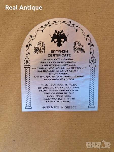 Прекрасна голяма антикварна сребърна икона със сертификат и маркировка → Обява 51686555