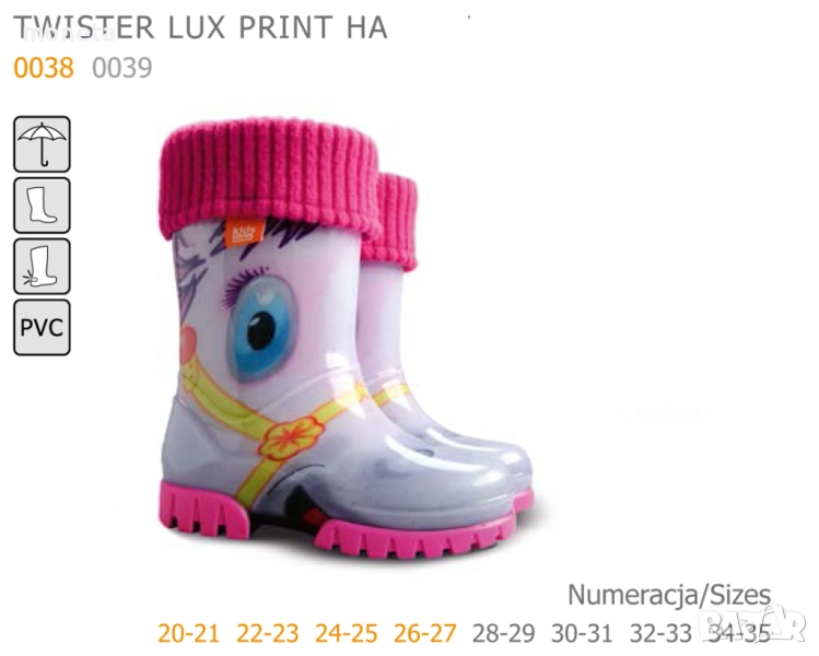 39,90лева (20,40euro) DEMAR: Нови детски Гумени ботуши с Топло чорапче. Размери 20-35. ПОНИ
