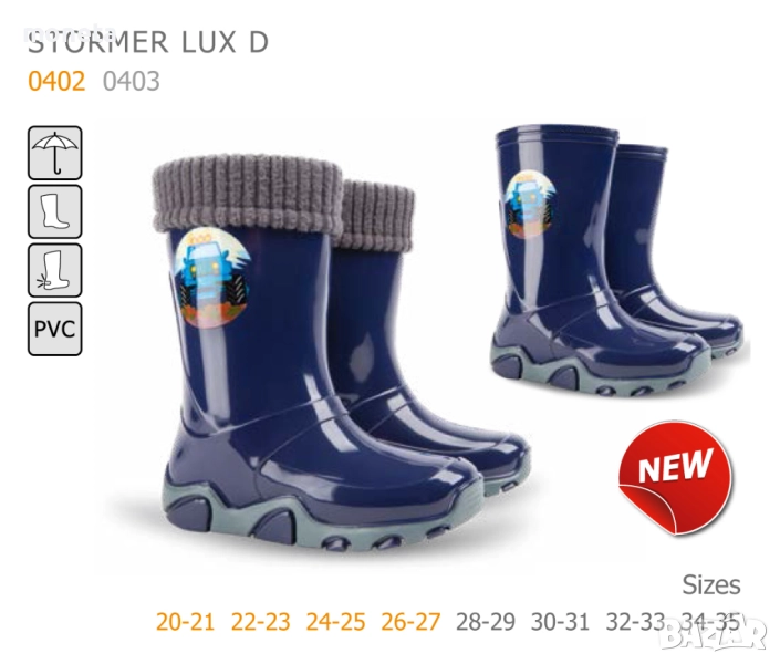 36,96лв (18,90еuro) DEMAR: Нови детски Гумени ботуши с Топло чорапче. Размери 20-35. СИН