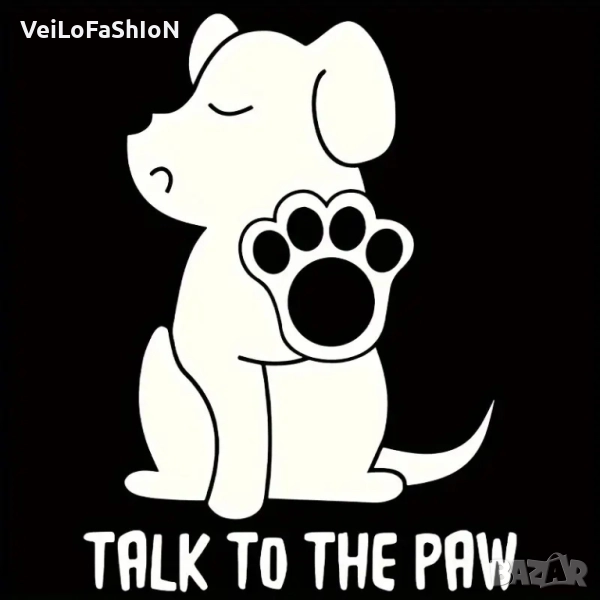 Новa забавна дамска тениска в черен цвят Talk To The Paw (Говори ми на лапата). Произведена от 100% памук с плътност на тениската 170гр./м². Тениската е с двуслойно деколте, странични шевове и подсилено двойно покритие на шията и раменете. Подходяща както за ежедневна употреба, така и за спорт или тренировка в свободното време.