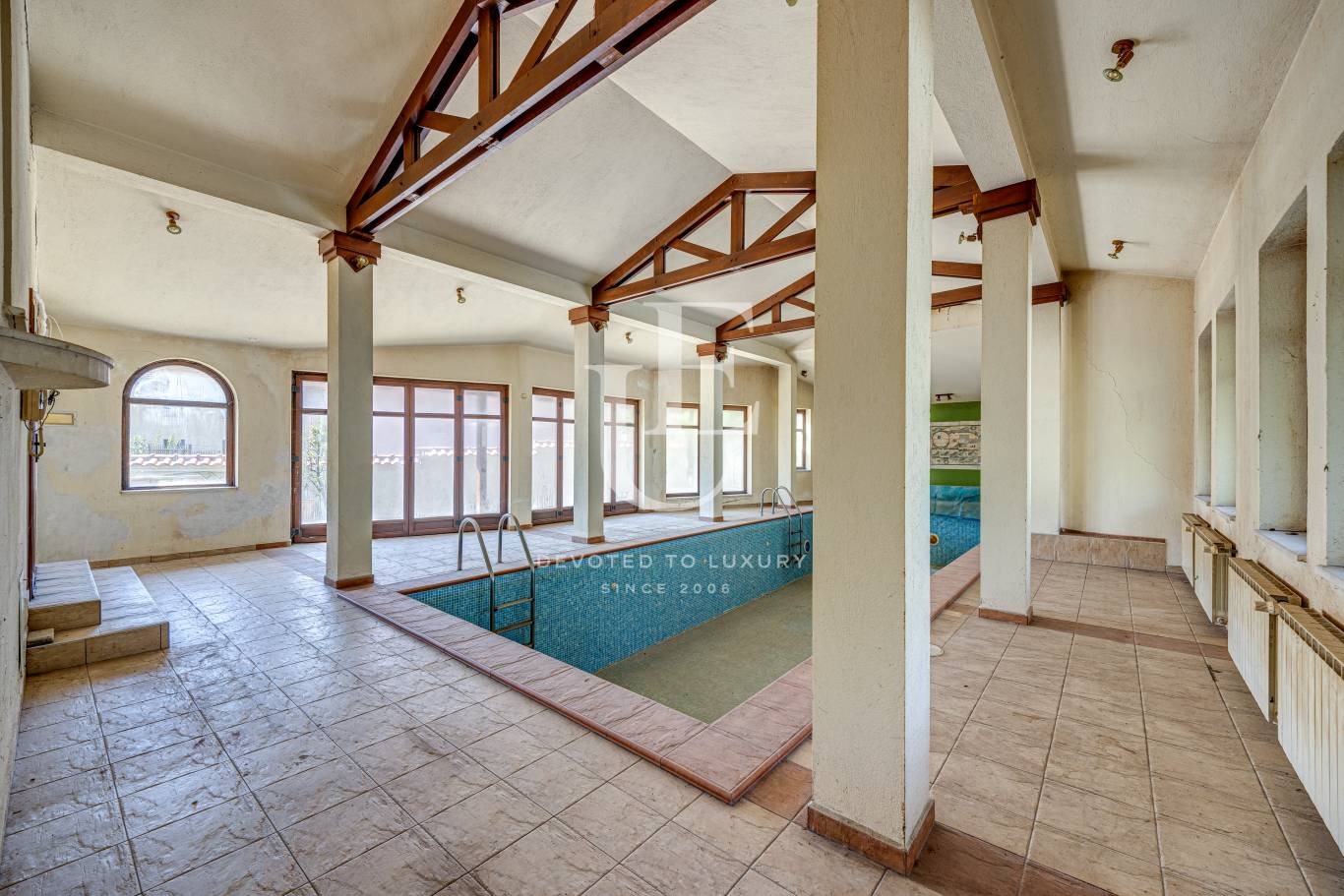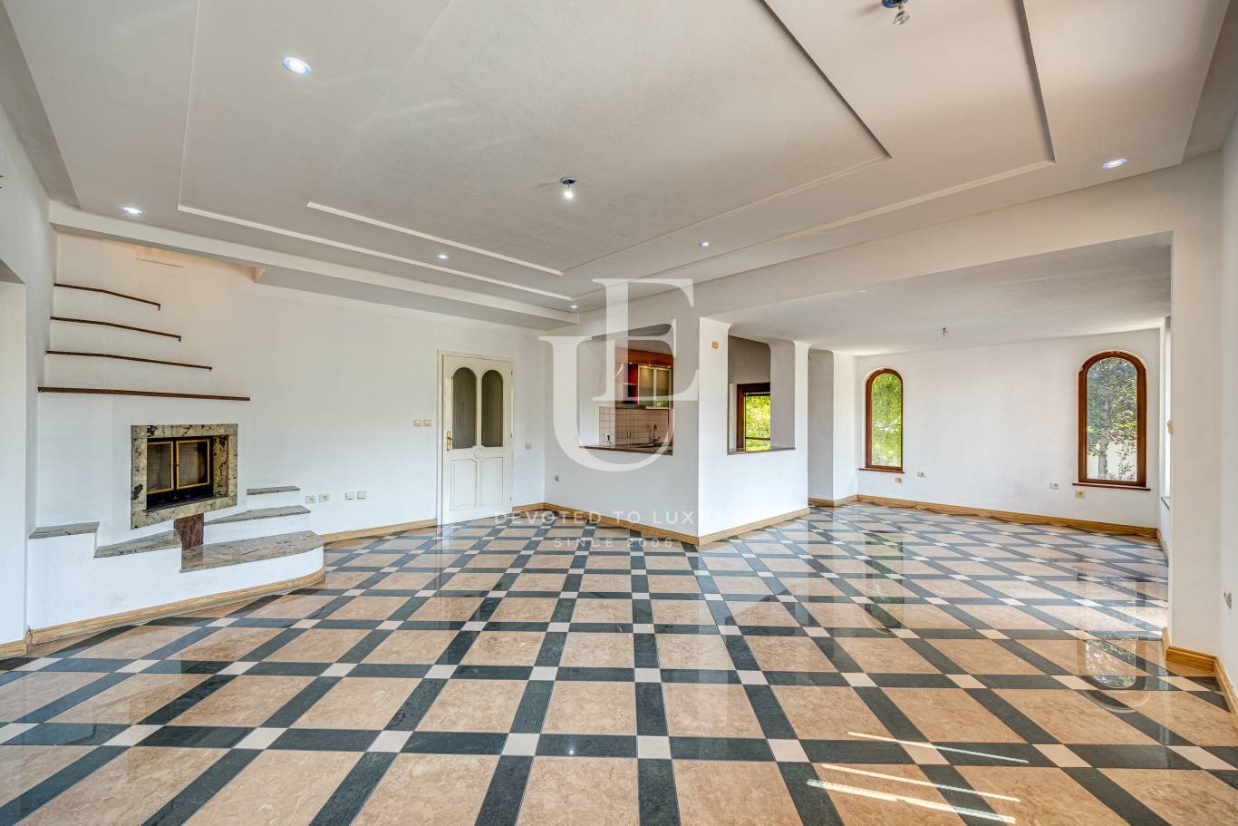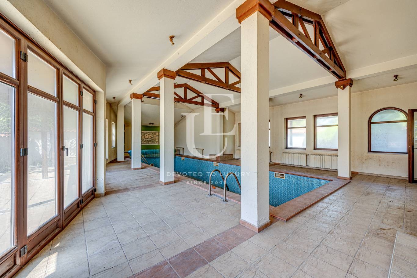 Имотът е с разгъната застроена площ от 605 кв.м. и е разположен върху равен и озеленен парцел с площ от 1200 кв.м. Къщата е построена през 2010 г. и впечатлява със светли, просторни помещения, функционално разпределение и големи прозорци, разкриващи красиви гледки към околността. Разполага с четири спални, три бани, фитнес и СПА зона, закрит басейн с целогодишно ползване, както и два гаража.