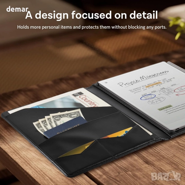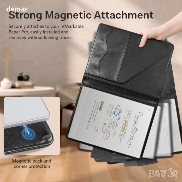 Проектиран за Remarkable Paper Pro 11.8" (2024), този калъф съчетава силно магнитно закрепване със здрава защита на ъглите, изискан дизайн тип папка за организиране на документи и отворени портове за пълен достъп до функциите на устройството. Изработен от висококачествена PU кожа с прецизни шевове за издръжливост и изискан външен вид, той включва и сигурна магнитна каишка за писалка, за да държи стилуса безопасен и леснодостъпен.
